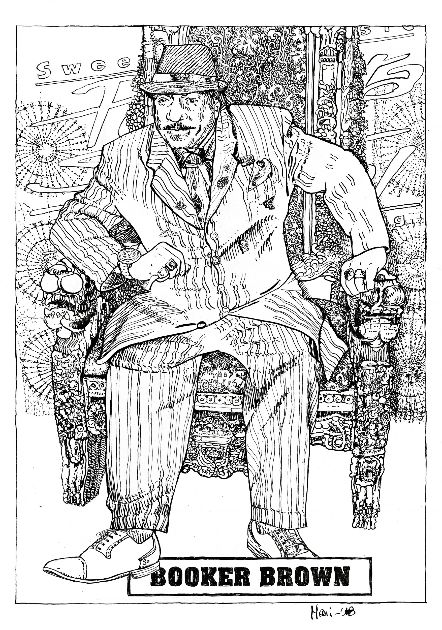 Settimo ritratto: Booker Brown, per la mostra “blues” condivisa con i colori di Alo, Carlo Andreoli. Saranno esposti i ritratti degli artisti presenti alla 31esima edizione del Porretta Soul Festival (19 - 22 luglio 2018). A Gomma Bicromata (dietro la stazione F.S. di Porretta) di Paolo Rippoliti . W il blues.