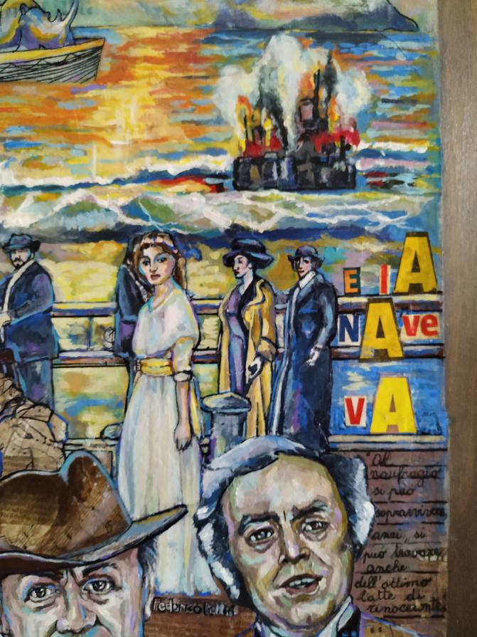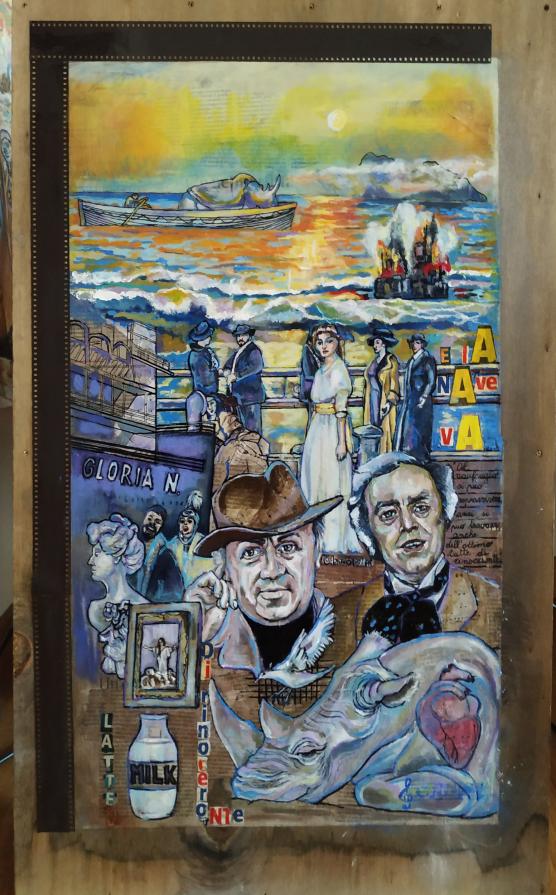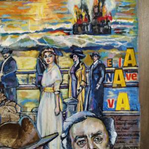 Nubifragio Pittura, Fantasia / Visionario, Acrilico, 50x80x1cm Dipinto su tavola di legno, su giornale dedicato a Federico Fellini e al suo film "E la nave va" Inserita 5 anni fa 4 Mi piace Non piace più 1 Commento 111 Visite Condividi Facebook Twitter Google + Piace a 4 Mauro Bobbo Artista, Designer, Installation artist - Venezia Tanya Bartolini Premium Artista - Milano Francesco Lussana Artista - Bergamo Patrick Smith Premium Scultore - London, Canada Commenti 1 5 anni fa Mauro Bobbo Artista, Designer, Installation artist Complimenti veramente interessante! Inserisci commento E' necessario effettuare il login o iscriversi per inserire il commento Login