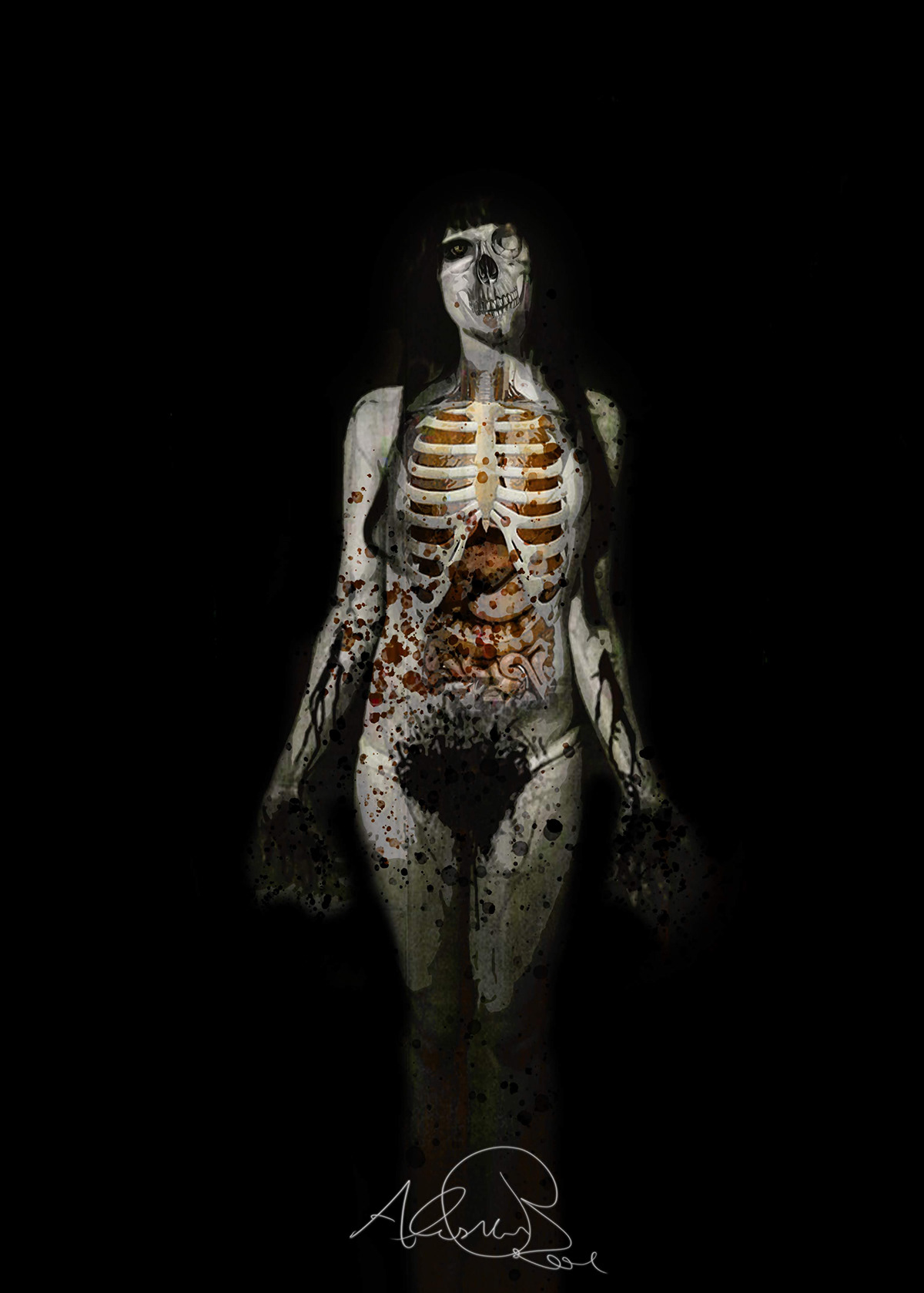 Questo quadro ha un impatto molto forte e addirittura disgustoso a primo sguardo, tutte le persone che lo hanno visto hanno detto che questa non è arte ma follia... Non posso dire che sia una bella vista ma è un messaggio chiaro tondo. Non volevo pubblicarlo ma ho deciso di farlo per vedere che effetto fa... Ogni artista ha la sua natura morta... questa è la mia.