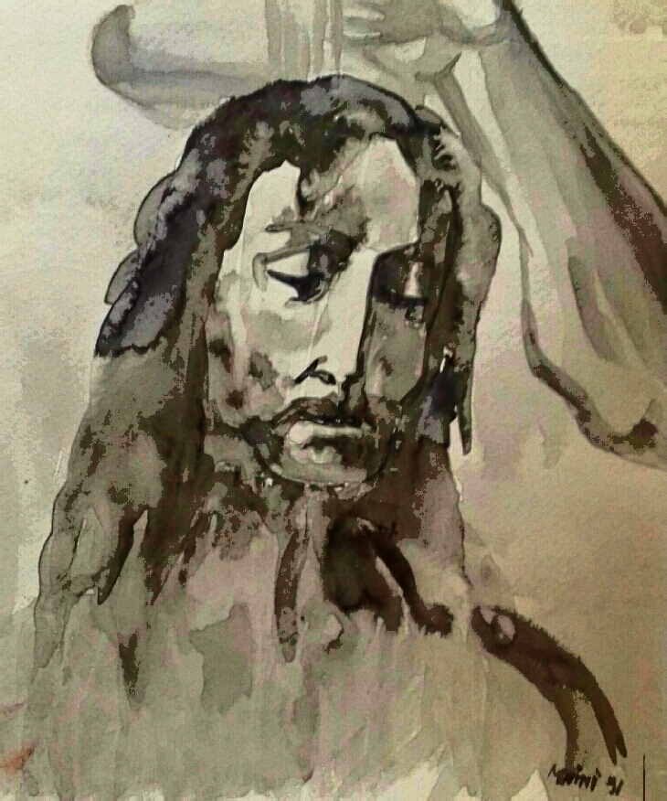 Inchiostro acquerellato su carta ocra