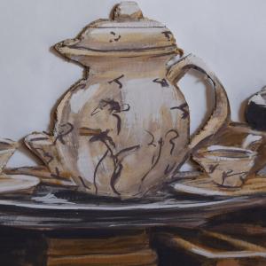 L'opera raffigura un mucchio di libri e oggetti vari che si possono trovare sopra una scrivania di uno scrittore come Tolstoj. L'opera è realizzata su cartone da imballaggio riciclato, ritagliato come sagoma, dipinto con pigmenti e colla vinilica, e incollato su una tavola di compensato di legno, anch'essa riciclata con le stesse forme. Le sagome però sono assemblate sul multistrato in modo innaturale e poco realistico. Messe cioè perpendicolari rispetto ad una ipotetica scrivania, cosi che all'osservatore perda il dato mimetico e illusionistico della pittura, trasportando cosi l'opera su un piano più astratto.