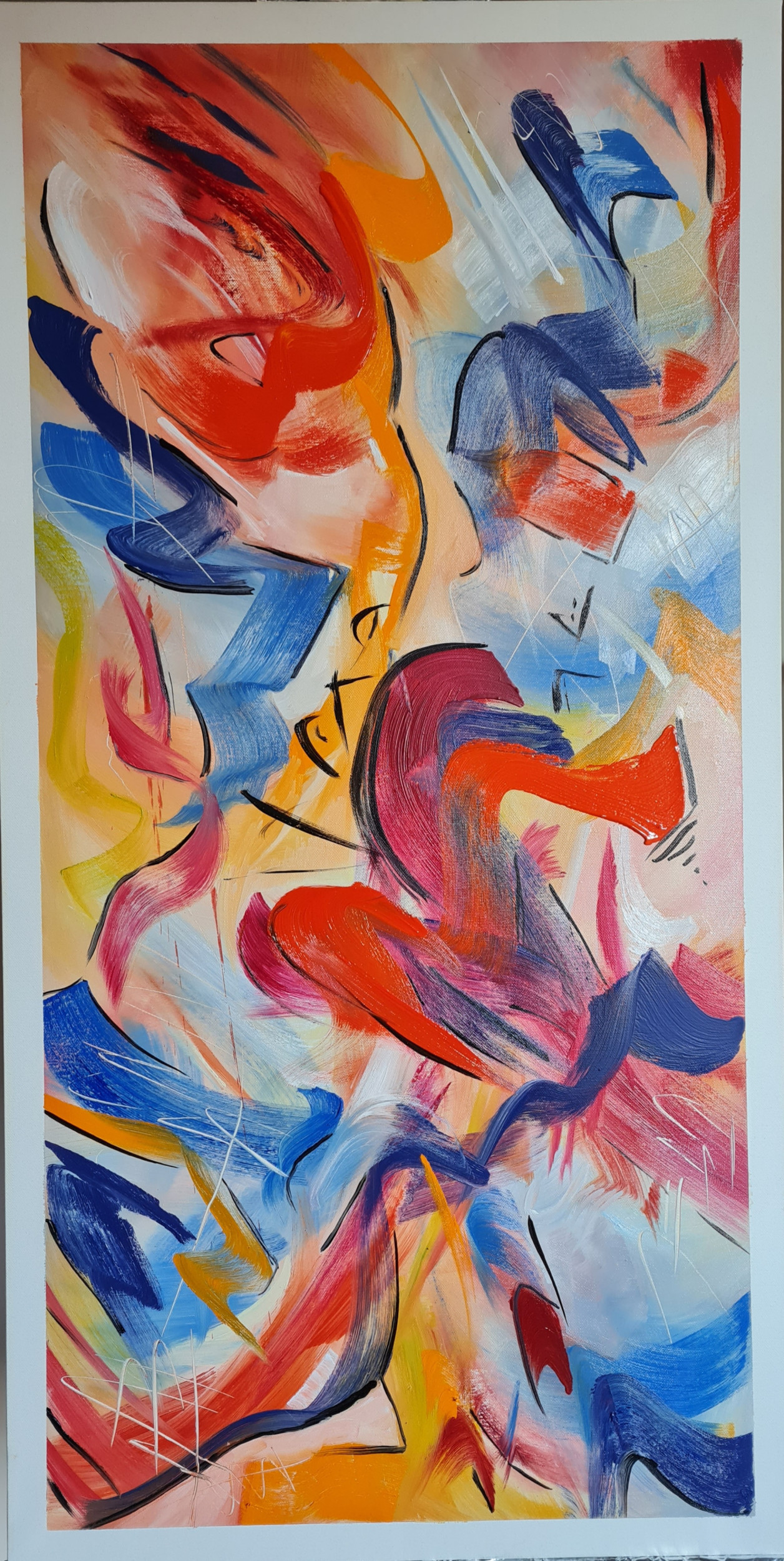 La composizione non segue regole geometriche, ma invita lo spettatore ad immergersi nell'emozione e a scoprire, tra il caos apparente, una bellezza che sfida la razionalità. Ogni segno, ogni macchia di colore è un frammento di un messaggio più profondo, una riflessione sull'armonia che nasce anche dai momenti più turbolenti della vita.