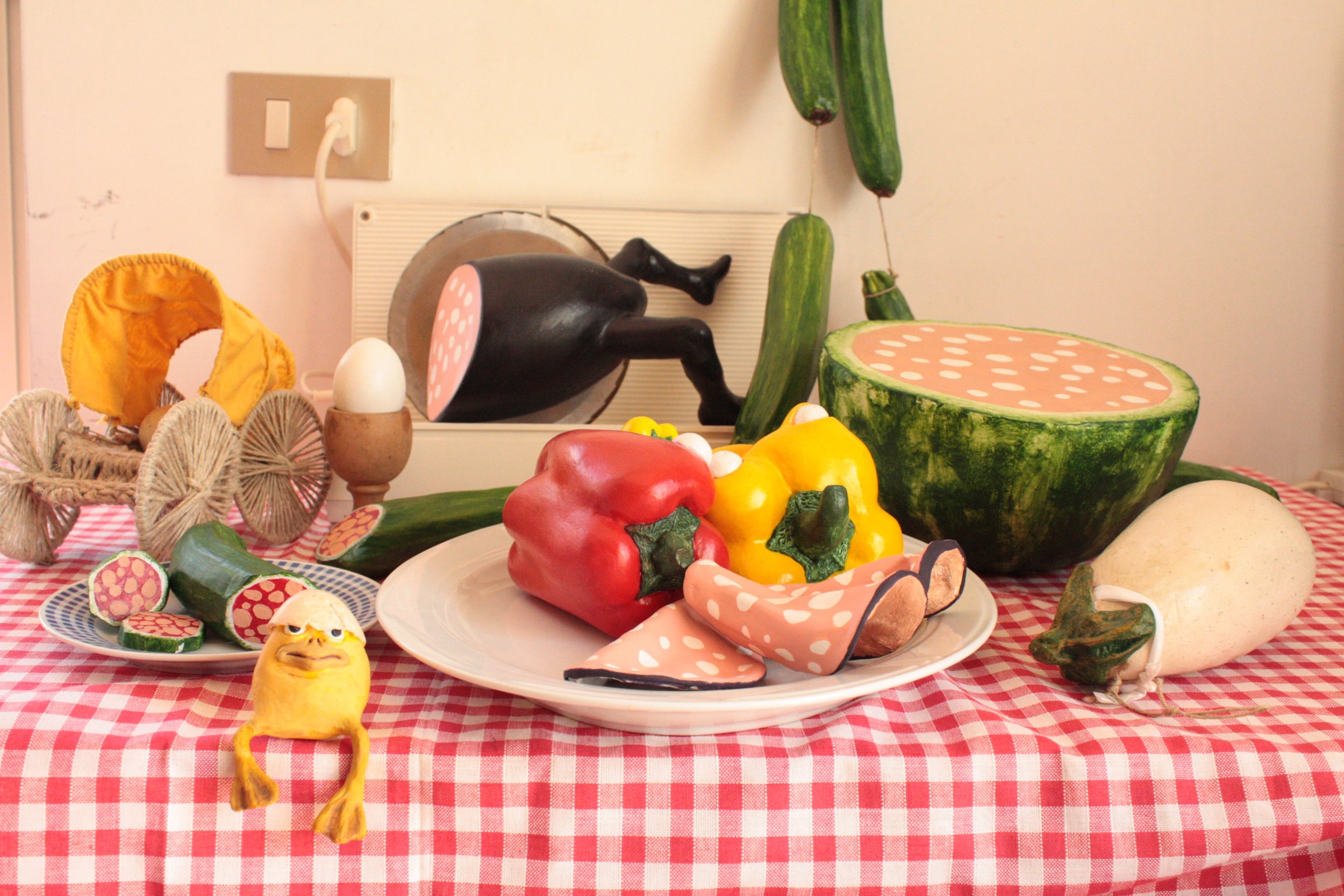 La mia opera ha come compito quello di evocare luoghi comuni come un posto a tavola, dove tutti ci sediamo per sfamarci e di trasformarlo in un momento di riflessione. Nella mia opera ogni ortaggio simboleggia l'uomo le cui sembianze possono cambiare a tal punto con l'evoluzione da contaminarne la natura. La vera evoluzione deve avvenire nella coscenza dell'uomo. Solo questo è il presupposto per poter parlare di progresso.