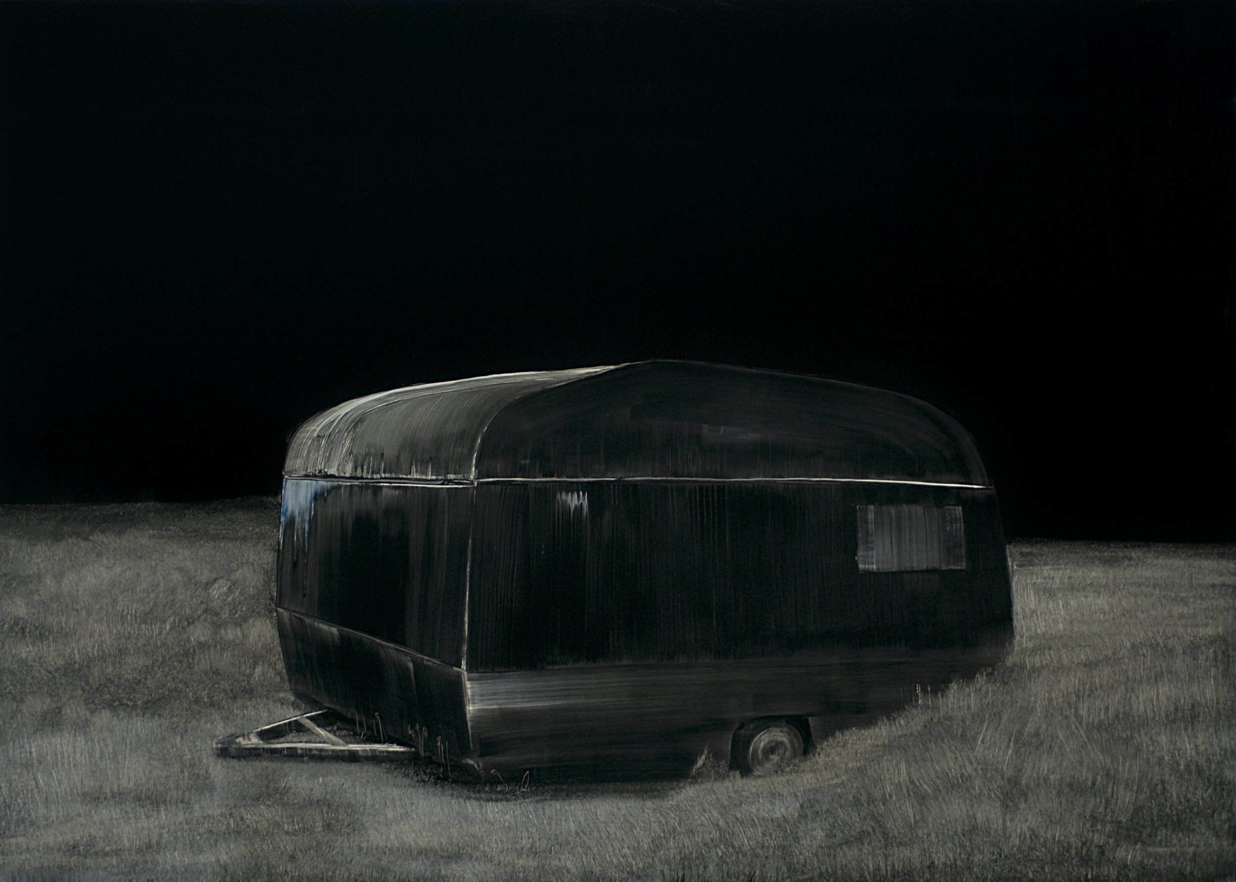 The caravan transforms a region of wilderness into landscape whether it is urban or pastoral. It provides a mark of civilisation and passes a comment on our relationship with the environment; it can also represent nostalgia for holidays or weekends away from the urban environment.