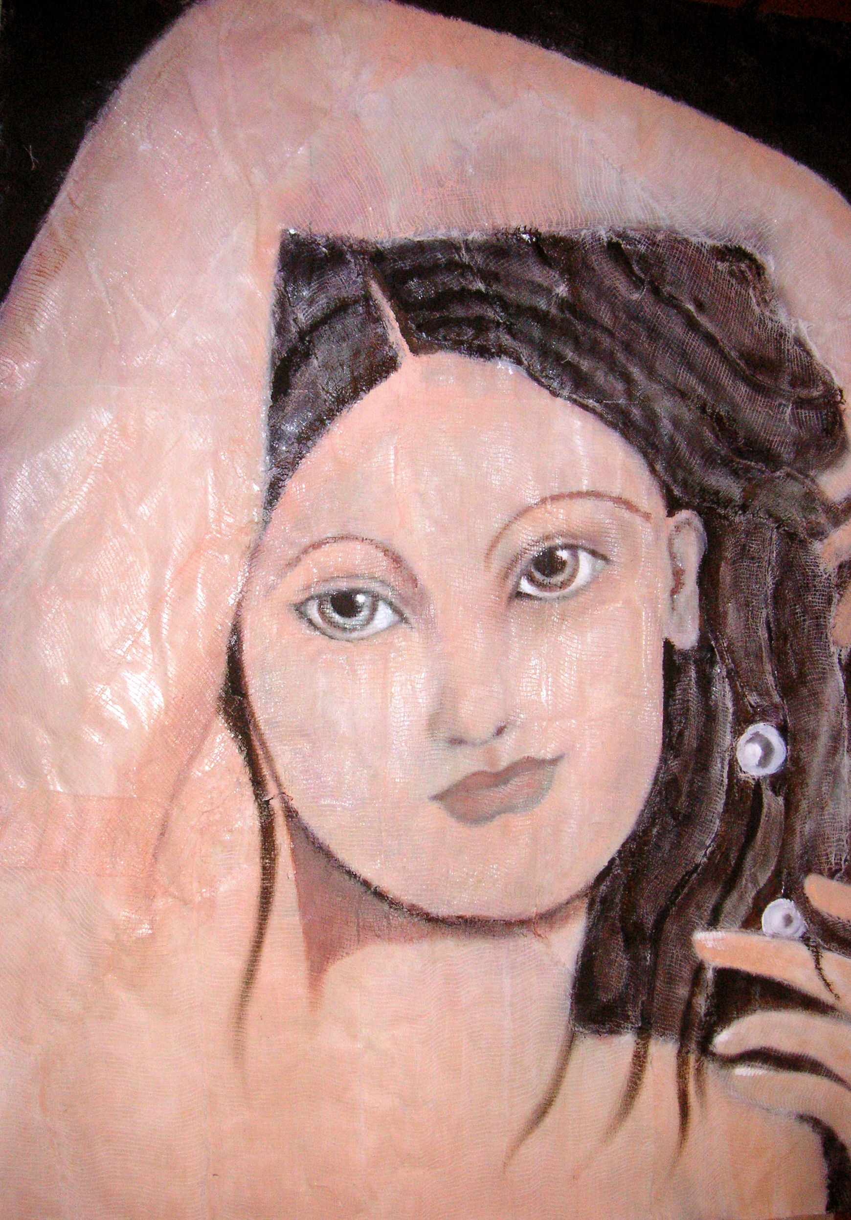 Rielaborazione di un mio quadro ad olio che amo ancora molto, ricreato per modificarlo e renderlo più vicino a come sento di esprimermi ora. Attraverso l'ingrandimento di una parte dell’immagine, con interventi di garza incollata su supporto cartaceo e colore acrilico ho ricercato una, per me, nuova sperimentazione che passando dalla pittura mi porta verso qualcos'altro!