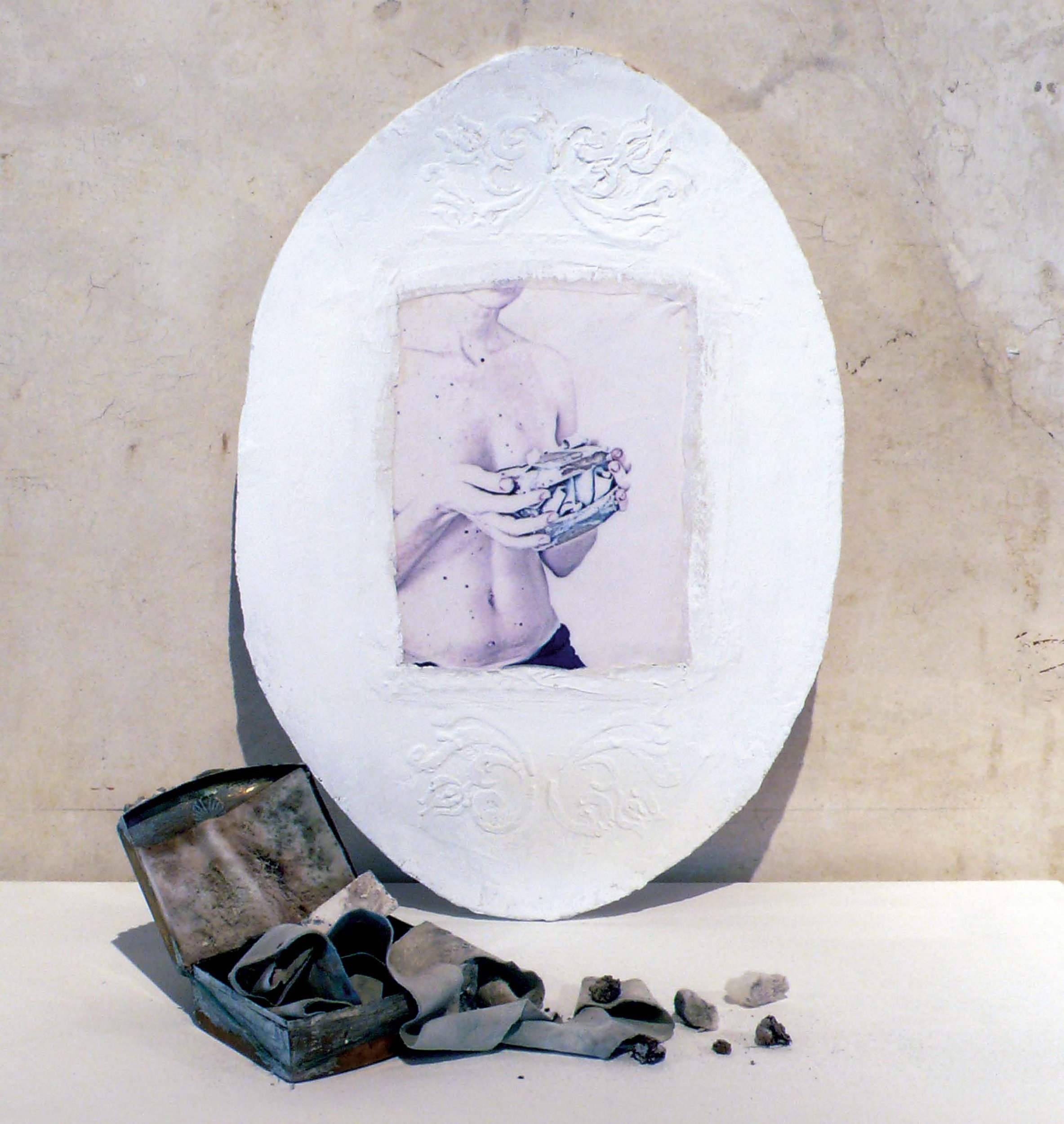 my sediment ( part two ) Scultura, Figura umana, Natura morta, 39x56cm autoritratto con oggetto TECNICA: tecnica mista e foto MATERIALI : scatola in ottone rimaneggiata, nastri, spatola, cotone , pietre , foto con autoscatto su carta pergamena, garze , pannello in legno con bassorilievo Inserita 15 anni fa 2 Mi piace Non piace più 0 Commenti 204 Visite Condividi Facebook Twitter Google + Piace a 2 Antonio Esposito Artista - Roma Natalia Mramorova Artista - Saint Petersburg, Russia Commenti 0 Inserisci commento E' necessario effettuare il login o iscriversi per inserire il commento Login