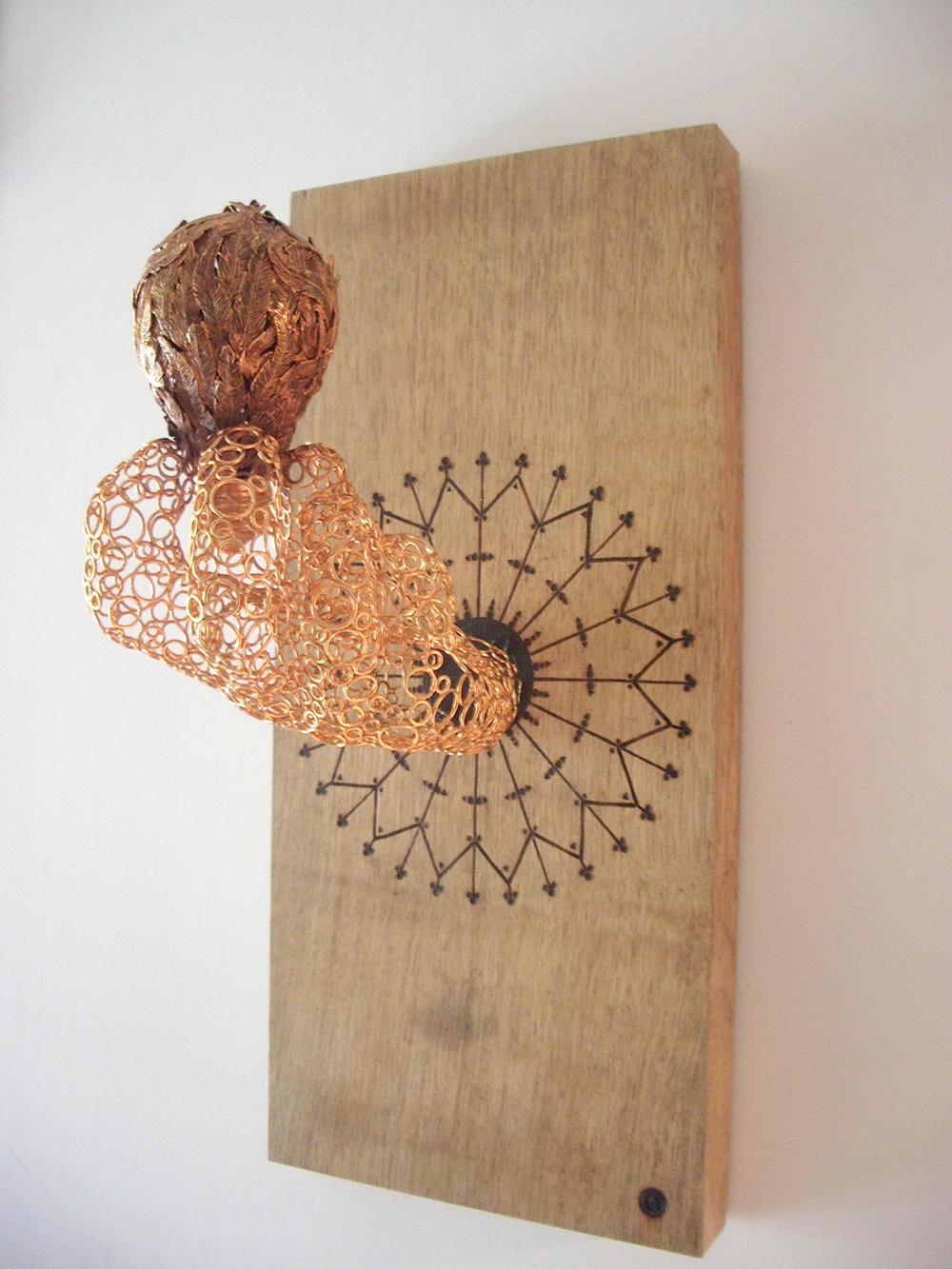 La lampadina è ricoperta di piume d'angelo per ricondurre la visione dell'opera al mondo spirituale