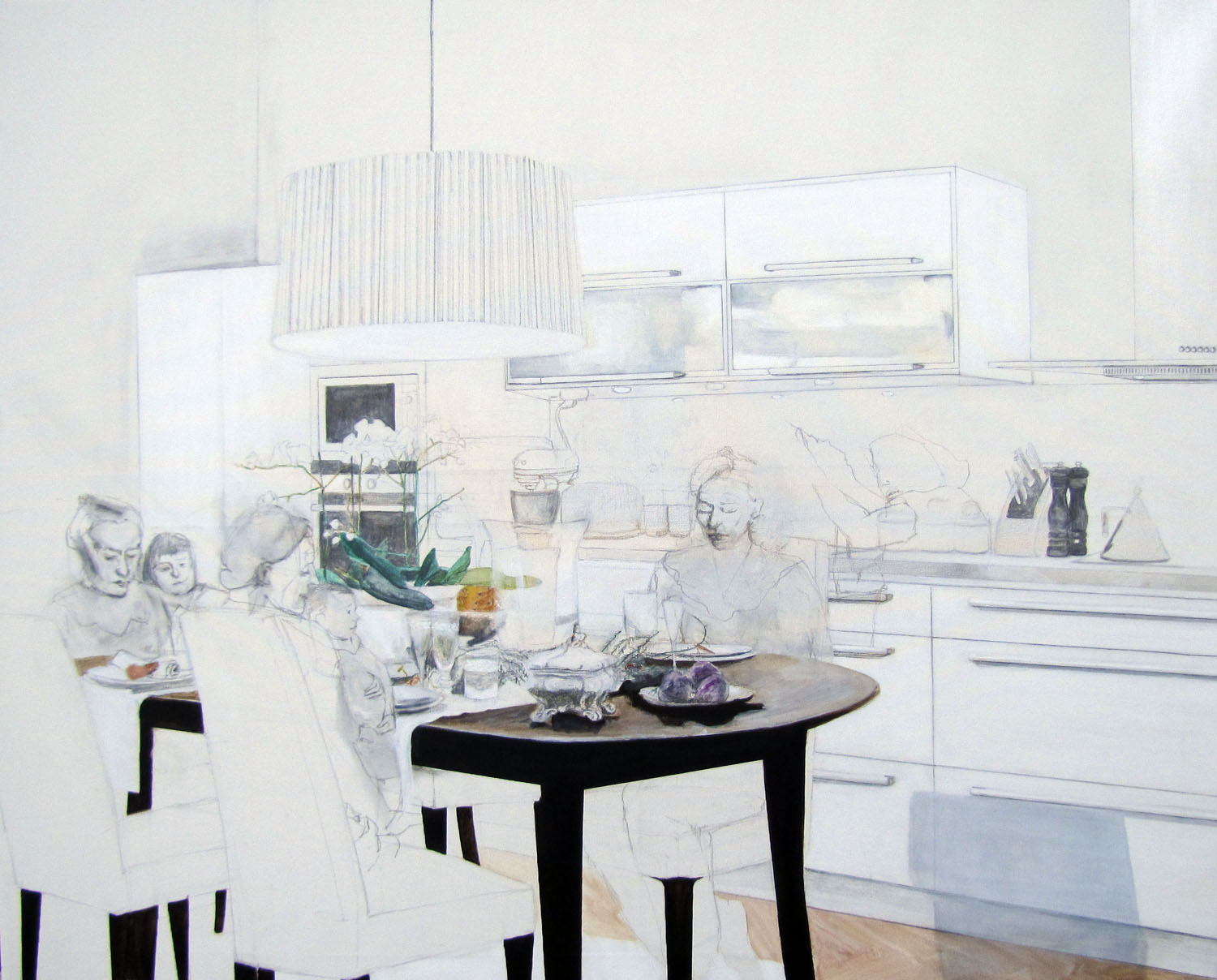 In my latest project ”Insider knowledge” I examine expectations and cultural identity. I get inside private homes. People, conciously or not identify themselves through trends, styles, design, architecture or even colour. In ”Cumulonimbusmoln” the interior shows one of scandinavian upper class apartments. Almost everything is in different shades of white, one of the most dominating and popular colours in Scandinavia. Everything is carefuly arranged and designed. In contrast to that there is something out of the ordinary and unexpected going on. I get interiors into the motion through creating a fictional scene with made up characters. I break the stillness and remove the cover to see what is hiding underneath.