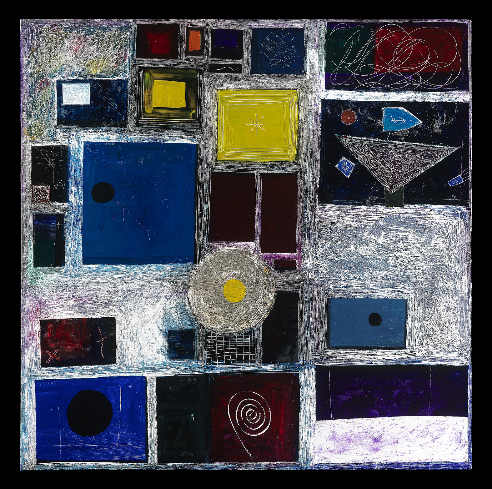 Straordinaria sinfonia compositiva concertata per contrappunti geometrici e segnici:quello che davvero trovo superlativo è la difficoltà reale ad omolagare e equilibrare patterm pittorici dai formati così differenti:trove che sia uno straordinario esercizio di stile,un colpo di coda all 'instabilità compositiva,virtuosismo allo stato puro.Complimenti!