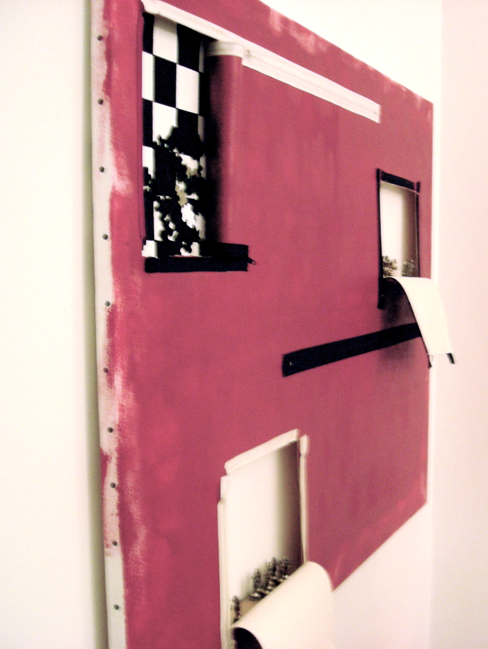 La tela come la vita si apre e si chiude ad un mondo ‘altro’, personalissimo e immaginario, al tempo stesso il quadro diventa lui stesso quel mondo che non esiste. Tutto ciò non rimane sulla tela finita ma accade nel momento della creazione, l’opera rimane come fotografia di questo ricordo.