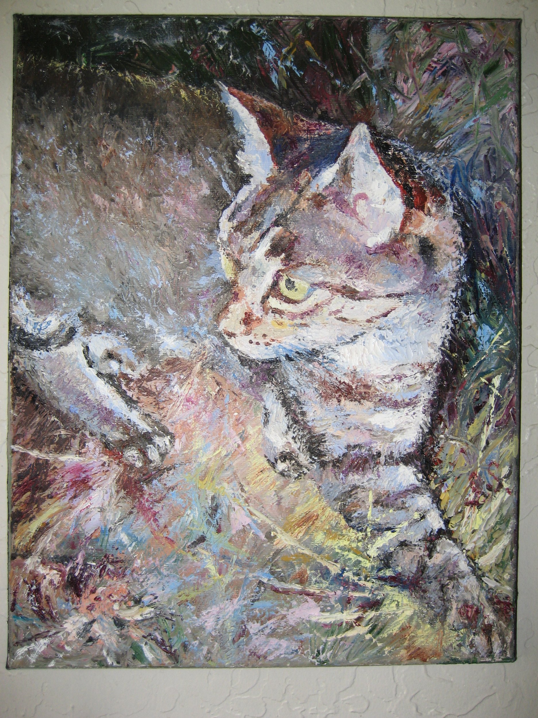 Hunter Pittura, Animale, Olio, 28x35x3cm Tela Olio cat A hunting cat is depicted with bright colors. Palette knife is only used. Inserita 14 anni fa 0 Mi piace Non piace più 0 Commenti 106 Visite Condividi Facebook Twitter Google + Non ci sono mi piace Commenti 0 Inserisci commento E' necessario effettuare il login o iscriversi per inserire il commento Login