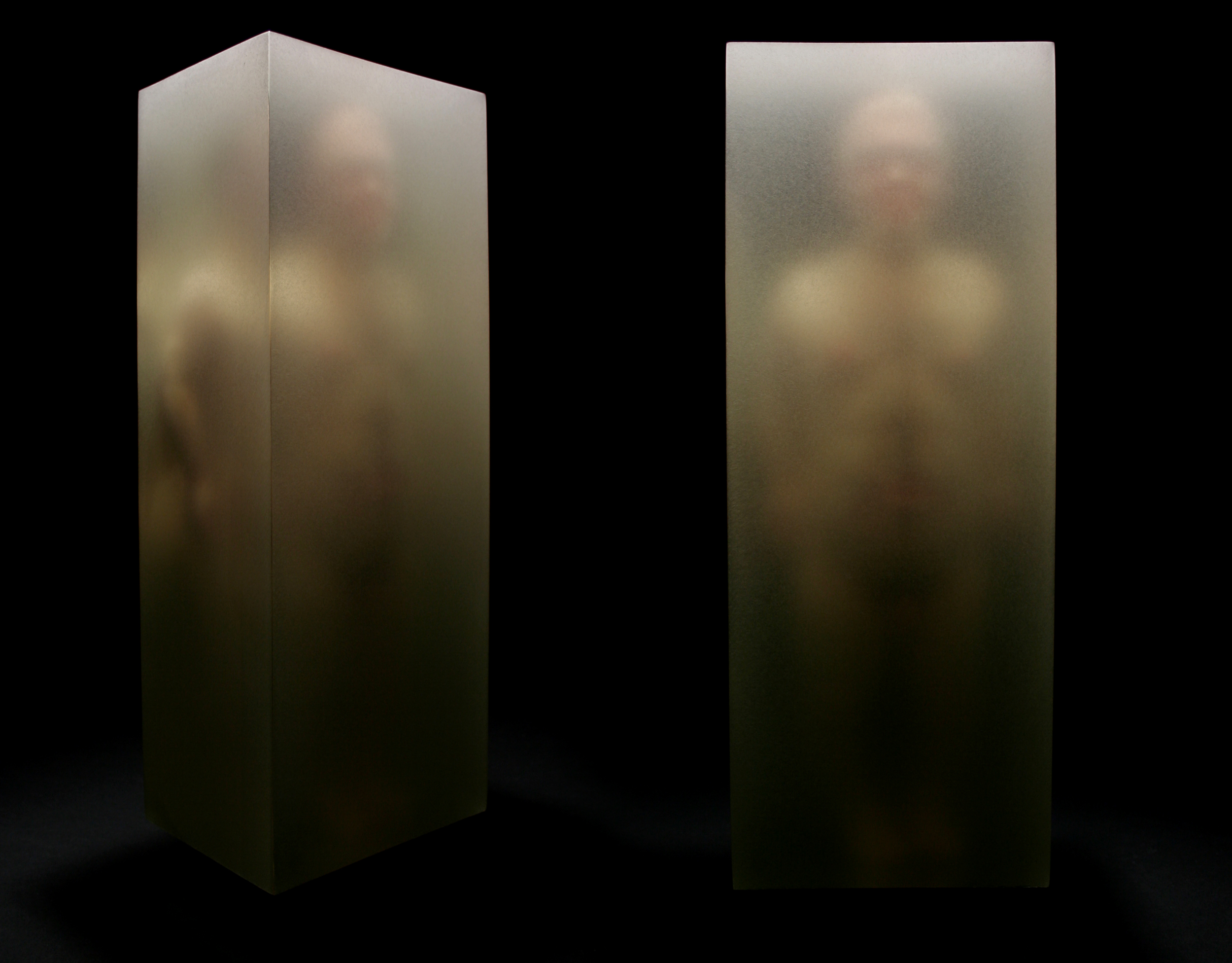 scultura in silicone inglobata in un blocco di resina