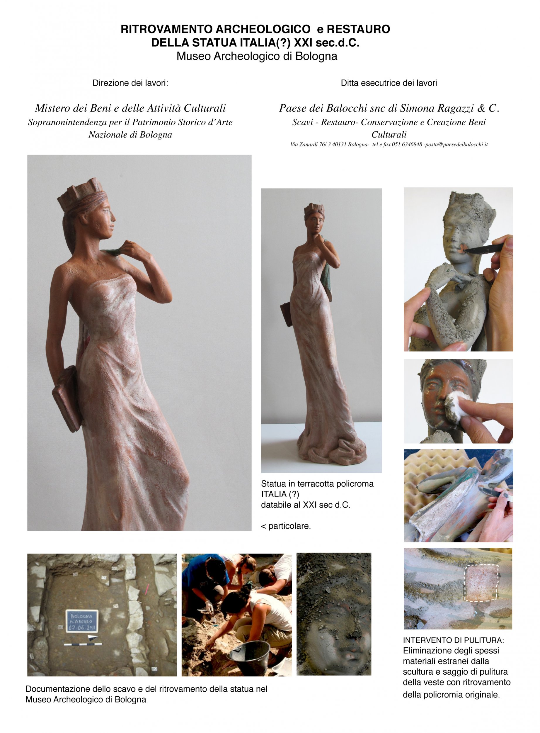 Performance di ritrovamento archeologico e relativo restauro di statua in terracotta policroma ITALIA (?) databile nel XXI sec. d.C. presso il Museo Civico Archeologico di Bologna.