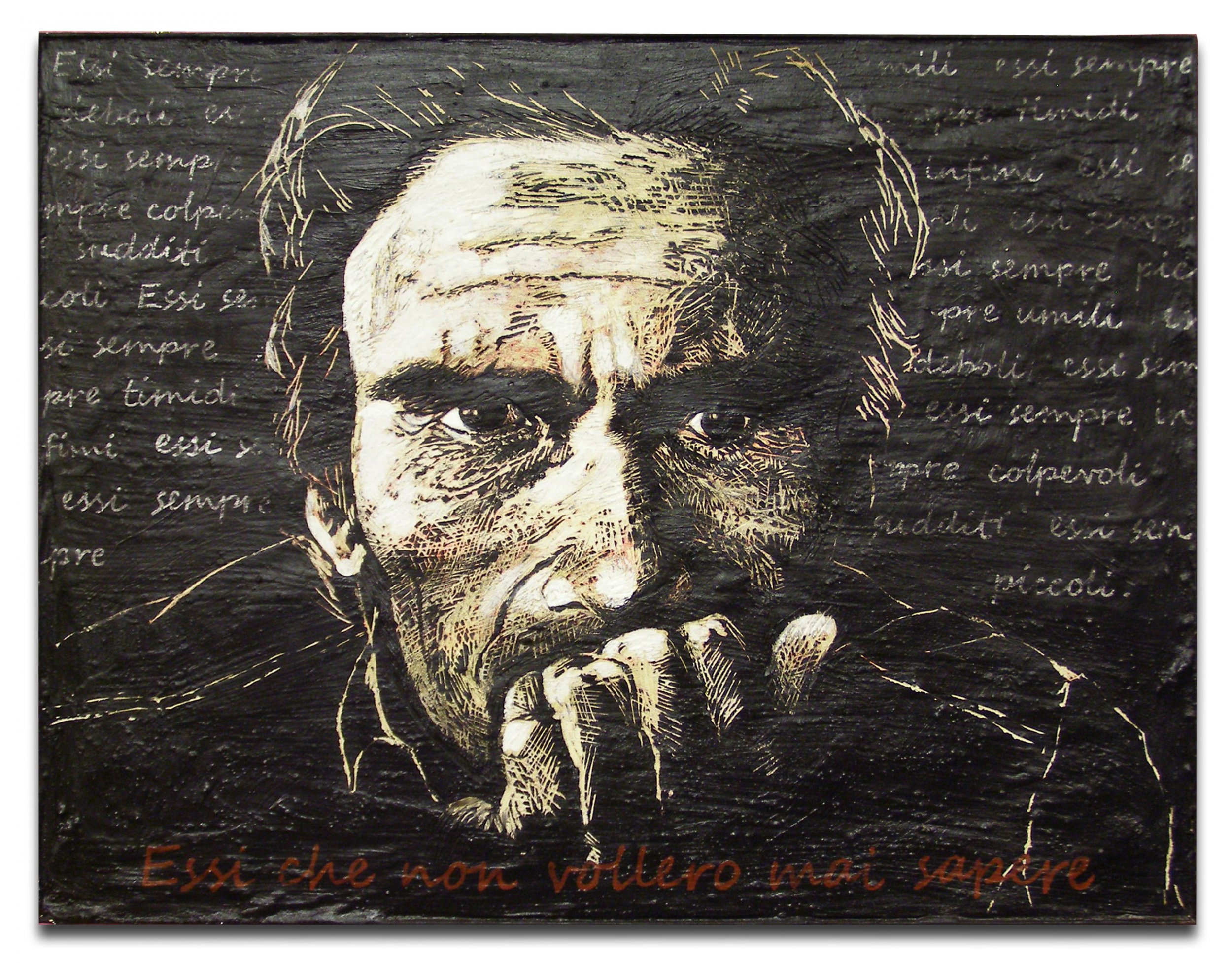 Essi che non vollero mai sapere Pittura, Ritratto, Figura umana, Tecnica mista, 82x62cm Tavola / Legno Tecnica mista ritratto incisione pasolini Ritratto ed omaggio a Pier Paolo Pasolini. Prima opera su cui ho provato la tecnica di "asportare il colore" tramite incisione su tavola gessata. Pittura (Premio Celeste 2011) Inserita 14 anni fa 8 Mi piace Non piace più 1 Commento 332 Visite Condividi Facebook Twitter Google + Piace a 8 Hermes Lacatena Artista - Napoli Sebastiano Magnano Premium Artista, Critico, Incisore - Modena Luisa Vailati Artista - Bergamo Omar Gordillo Artista - Lima, Peru Domenico Cipollina Fotografo - Agrigento Giovanni Longo Artista - Reggio di Calabria marina lodi Artista - Piacenza Cat Fotografo - Strasbourg, Francia Commenti 1 13 anni fa Sebastiano Magnano Premium Artista, Critico, Incisore Bellissimo, complimenti! Inserisci commento E' necessario effettuare il login o iscriversi per inserire il commento Login