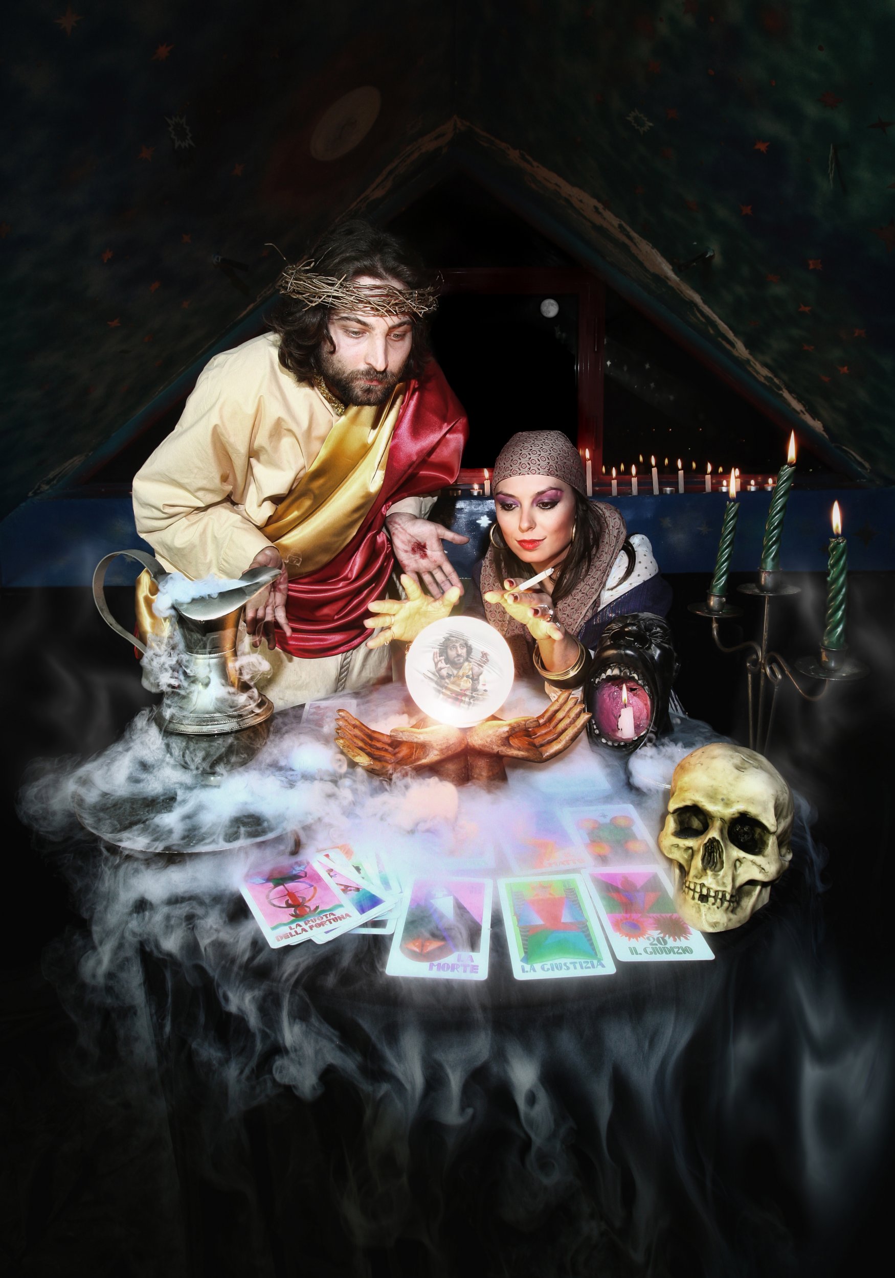 La maga prevederà nella sua sfera che come 2000 anni fa fu crocifisso e torturato, oggi verrà arrestato e chissà magari rinchiuso in un manicomio…….