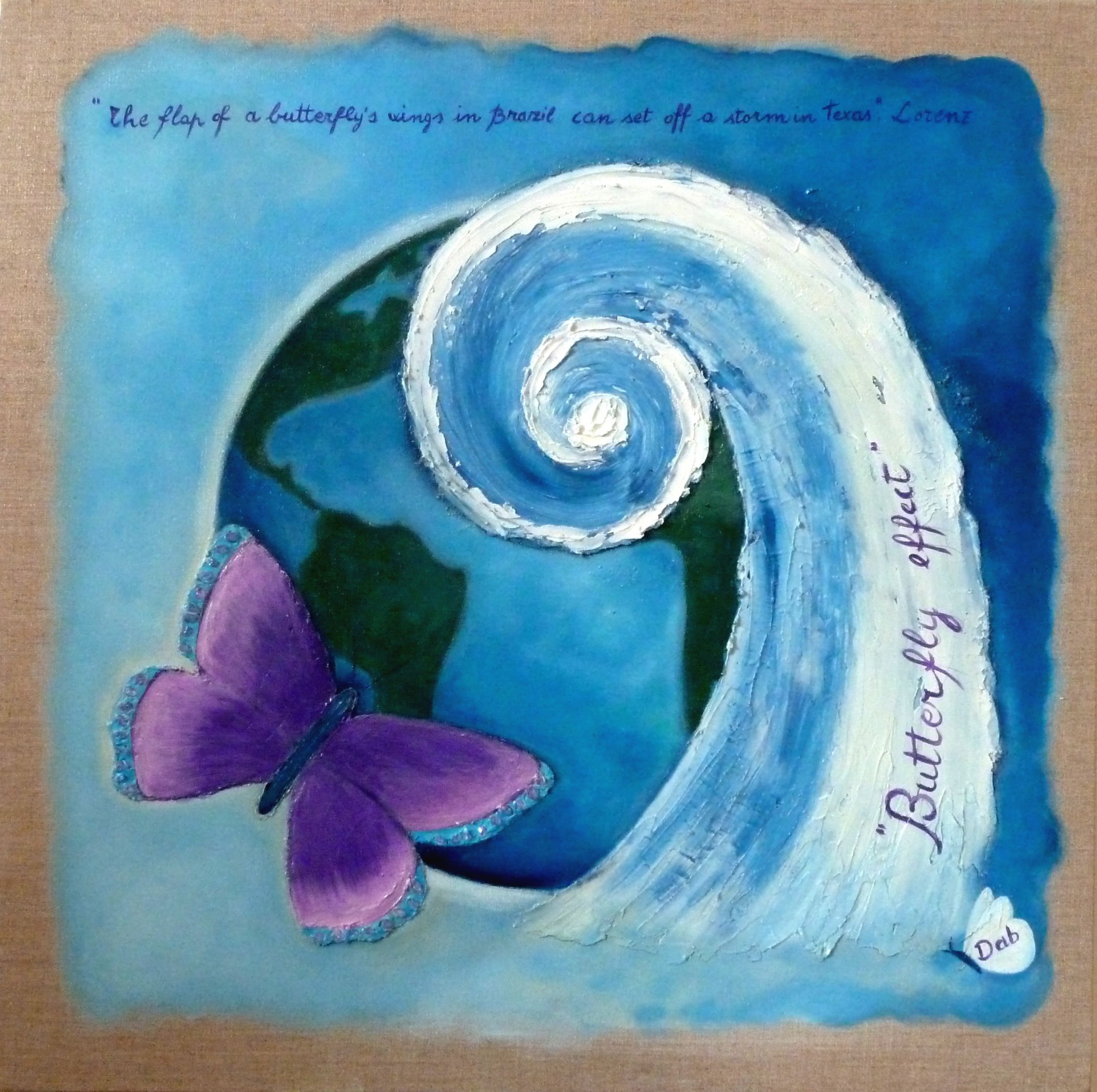 Protagonista dell’opera è il cosiddetto “Effetto Farfalla”, ben evidenziato anche dalla frase “The flap of a butterfly’s wings in Brazil can set off a tornado in Texas” di Edward Lorenz, fisico e meteorologo, padre della famosa Teoria del Caos. Questo effetto rende manifesto come piccole variazioni nelle condizioni iniziali possano produrre grandi variazioni nel comportamento a lungo termine di un sistema, che può essere biologico, chimico, fisico, economico o sociale. Da tutto ciò si evince un concetto basilare: siamo tutti collegati, un filo invisibile ci unisce.