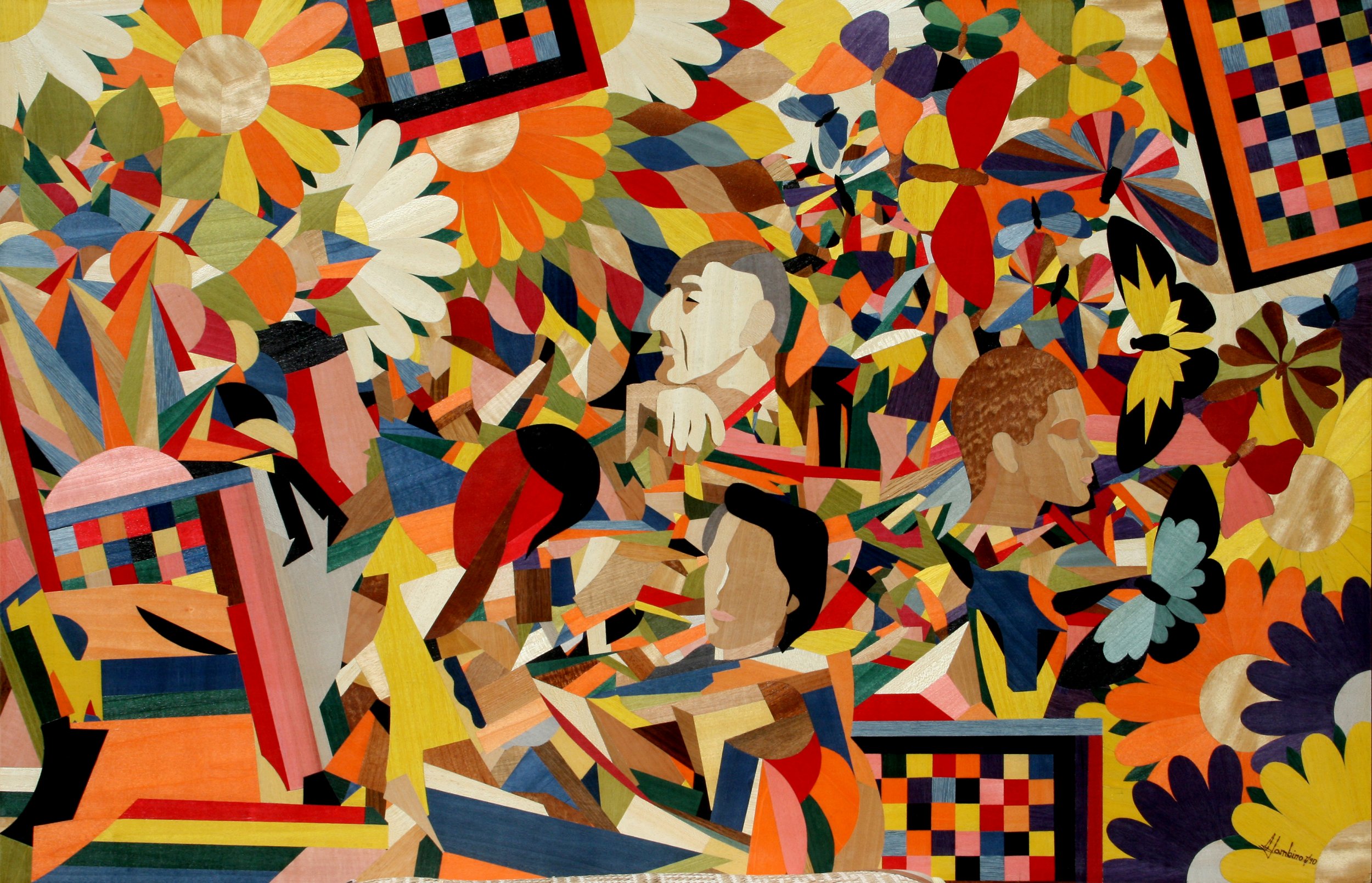 Oh! Finally everyone.There has never been so many works. Now, we begin working, let's examine them. Abstract, geometric, what you say is figurative, not futuristic, or better informal, it is not minimalist, but don't you see? It is expressionism! We have no clear ideas, it is chaos around us! Shut up, Iunderstand it is the usual vice, each shall give the verdict, signaling the beloved onbe! But we?re just beginning, it is the "ART"! Let's put it aside, along with all the cards. This time you won, the body is bound, but the thought of ever belonging to the "Art" led. Dear butterflies and large butterflies you were not perfect, as I thought, but full of defects. I do not condemn you I give you flowers, but fate has already condemned you, turn at sunset and you will be forgotten. I,the "ART" take the bull by the horns, I will be the winner and become stronger than before, passed down through the centuries and in the books told.