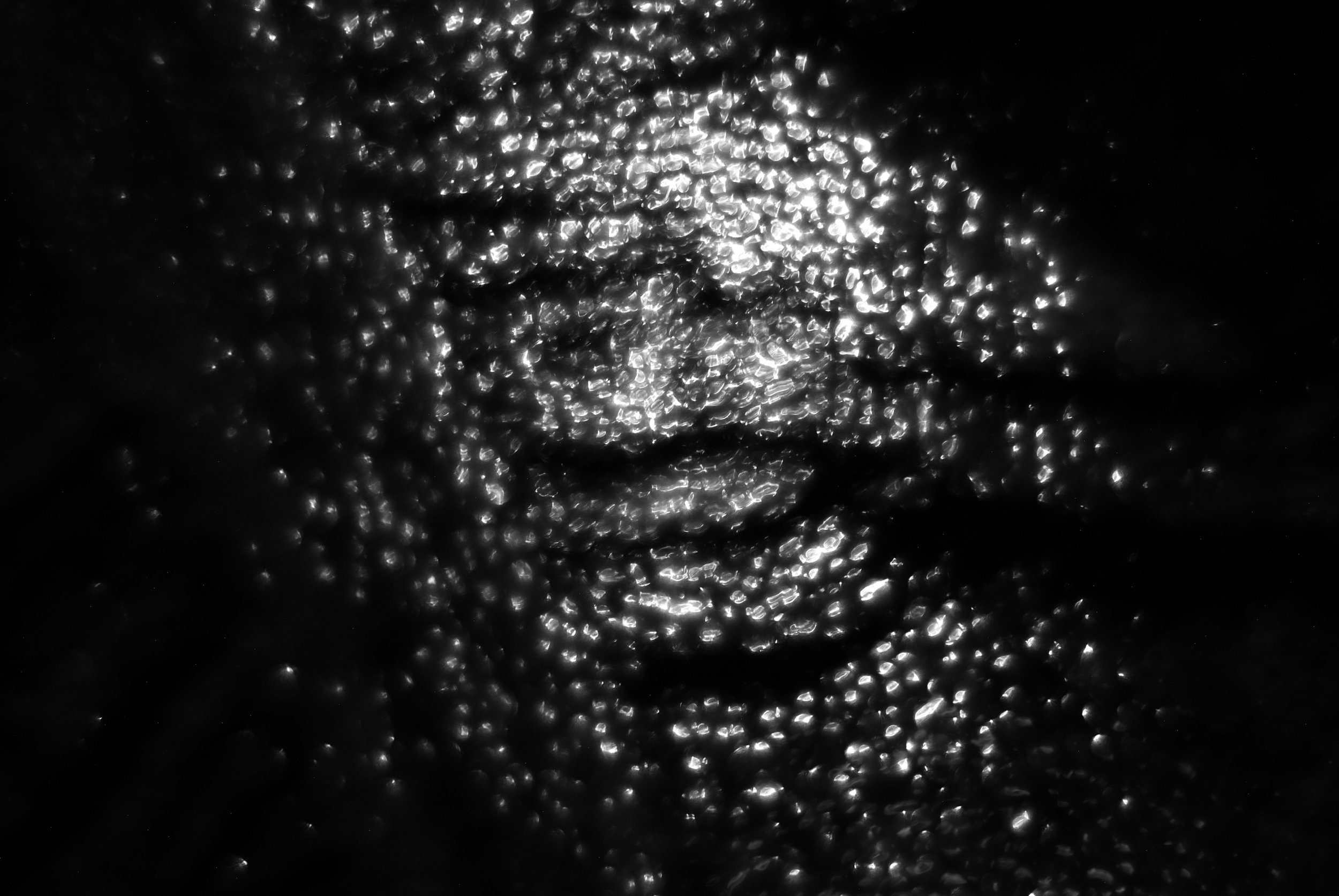 L’oscurità’invade tale spazio ma non in modo permanente e statico,anzi,si nota una continua metamorfosi geografica,un andirivieni di particelle luminose che si coagulano,si compattano e si alleano,fanno perno su loro stesse e sulla loro forza di legame e reciprocità nel tentativo estremo di bloccare questo assorbimento quasi totale del concetto piu’assoluto di oscurità - il buio più profondo,avvolgente ,senza limiti e confini,appunto infinito. Metafora delle nostre paure,debolezze ed insicurezze oppure semplicemente della nostra ignoranza. Paura non di ciò che non ci lascia intravedere bensì di ciò che non si conosce.