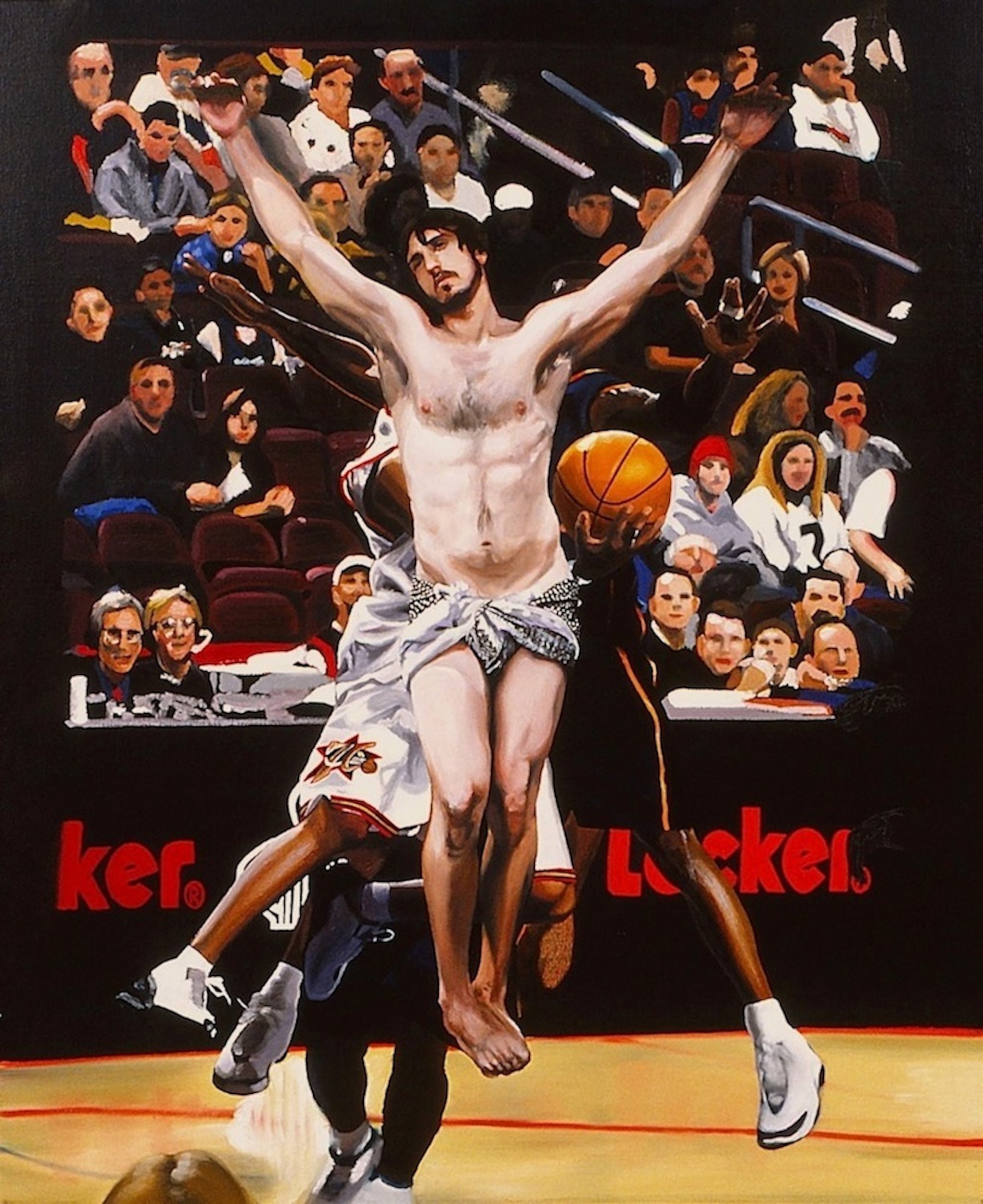 By forfeiting my own image, my portraits explore the dynamics between spectacle and spectator, the powerful and the powerless, the believer and non-believer. The paintings are both collective and private fantasies that are highly critical of our social complacency. Each composition gives the appearance that nothing is out of place. Like a collage these absurd realms easily accommodate one another into a single picture plane.