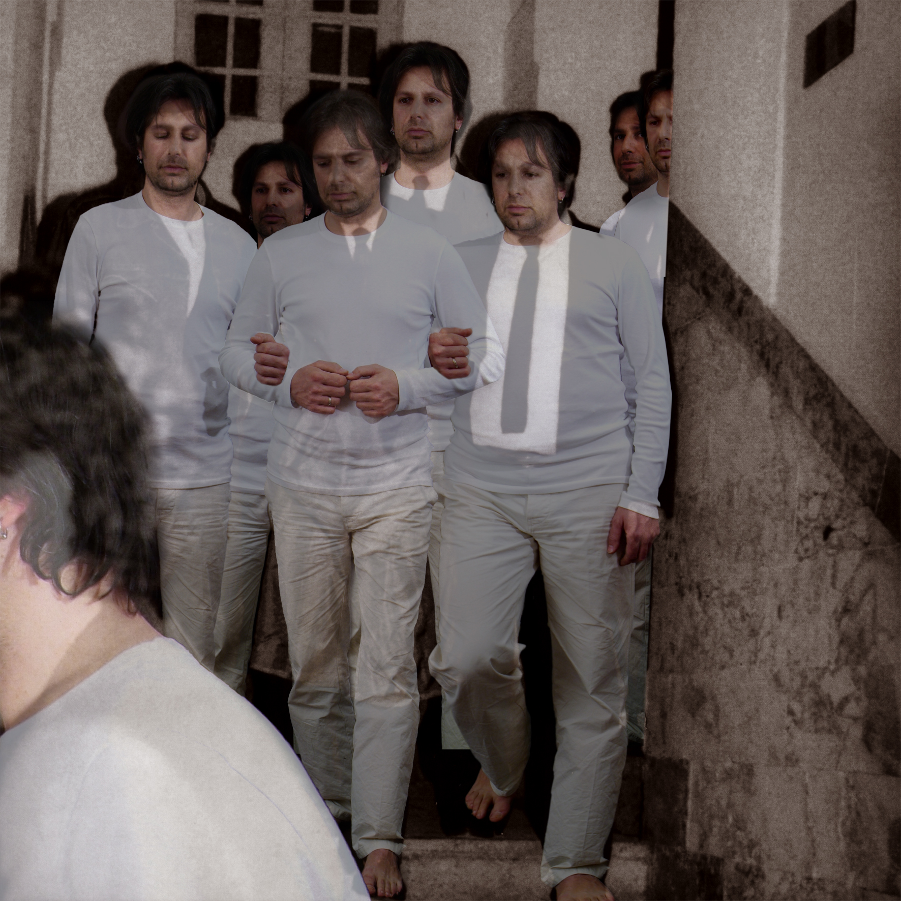 Scelgo opere di altri che raccontino delle esistenze, da esse, attraverso una sorta di performance teatrale, ricalco e mi approprio delle posizioni, delle espressioni, delle emozioni dei protagonisti e delle comparse. Per ogni posa assunta vengo fotografato in modo da potermi successivamente sostituire a tutti i personaggi rappresentati.