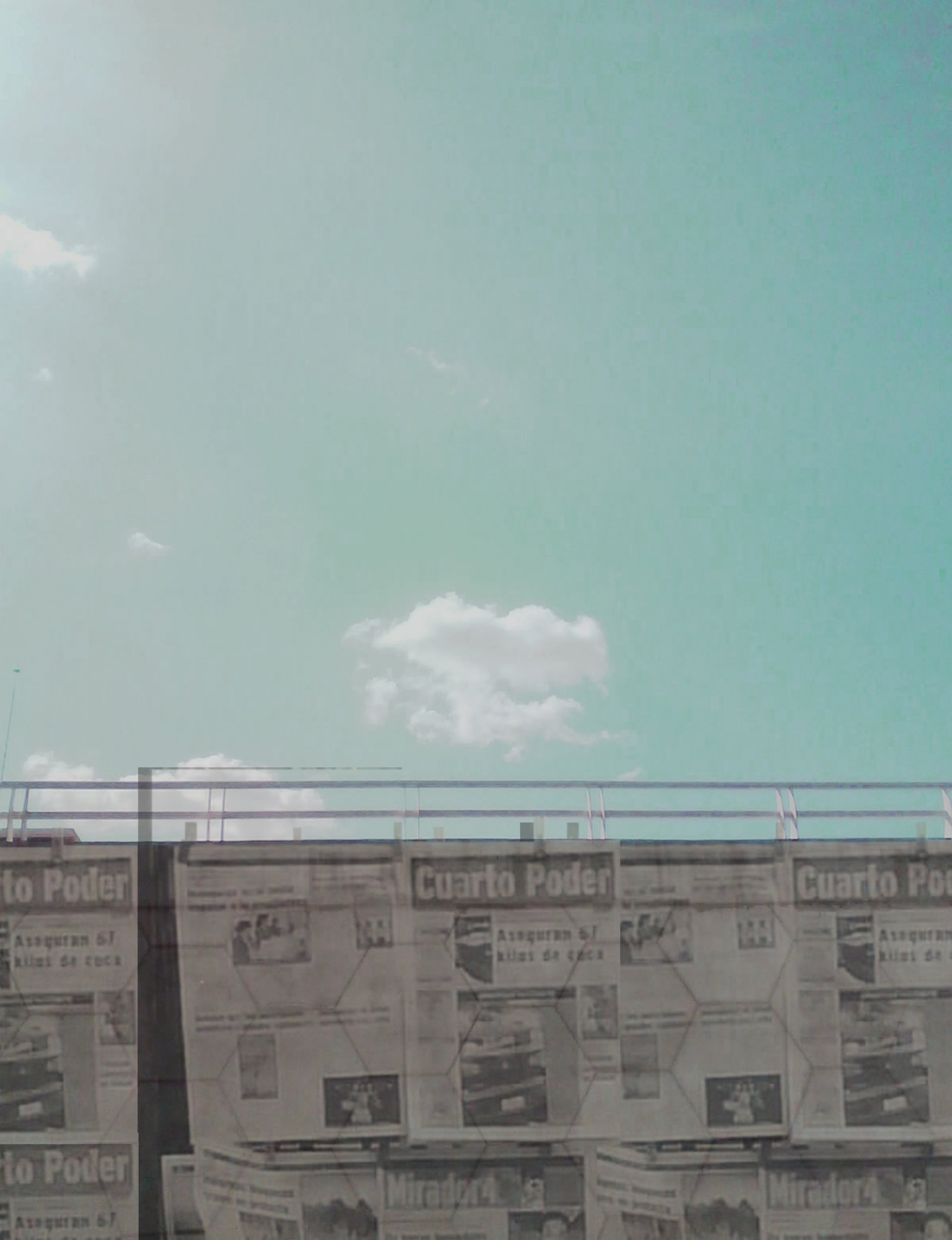 América Informada (América Informed) is a digital collage made from images captured during trips through the Americas from 2009 to 2011. By mixing natural and urban/constructed landscapes, the work calls attention to the freedom of speech and access to information in the continents, aspects of the social and political context of the places visited during the journeys through the Americas. Together with other five digital collages on canvas and two videos, the work was exhibited in Cotidiano & Mobilidade's exhibition at the Escola de Artes Visuais do Parque Lage, in Rio de Janeiro, Brasil, July - August 2011.