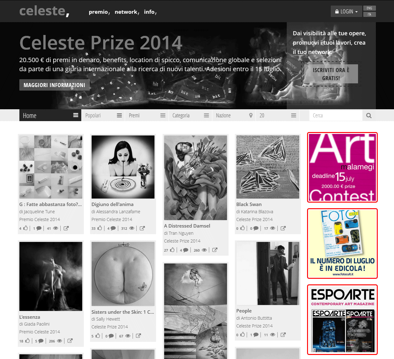 Utilizza i nostri servizi pubblicitari dedicati a chi vuol far conoscere concorsi, eventi, mostre, corsi, inaugurazioni, riviste e attività legate all’arte.