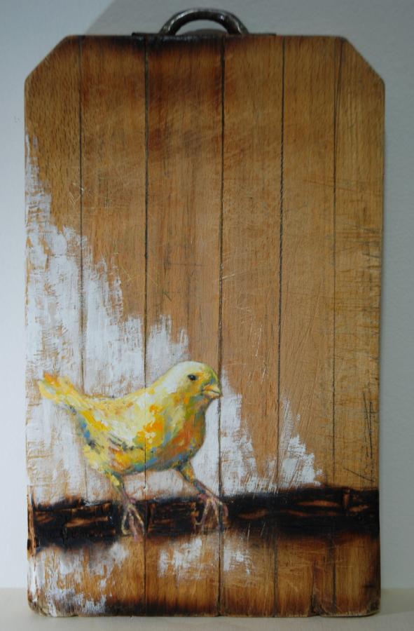 Dipinto ad olio e combustione su tagliere anni 70°
