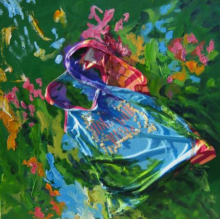 olio su tavola + indumento personale con cornice a cassetta