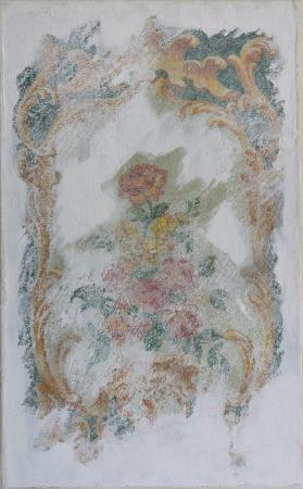 interpretazione di un discialbo eseguito nell'ambito di un restauro di un apparato decorativo vincolato dalla Soprintendenza; opera appartenente allo stile dell'Arte Conservativa (termine coniato e depositato dall'artista per descrivere il suo linguaggio) e alla serie "Frammenti di storia" diventa occasione di sperimentare la nuova lettura contemporanea e astratta di una metodologia artigianale consolidata.