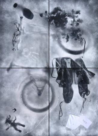 L'opera ispirata ad un negativo fotografico è invece pittura con una tecnica in pigmento puro e polveroso che diventa indelebile.